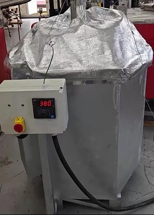 El reactor térmico es una construcción metálica cilíndrica soportada en la parte inferior con un revestimiento interior cerámico, aislante y personalizado, para soportar la carga térmica y también retener el calor generado en el sistema del reactor.